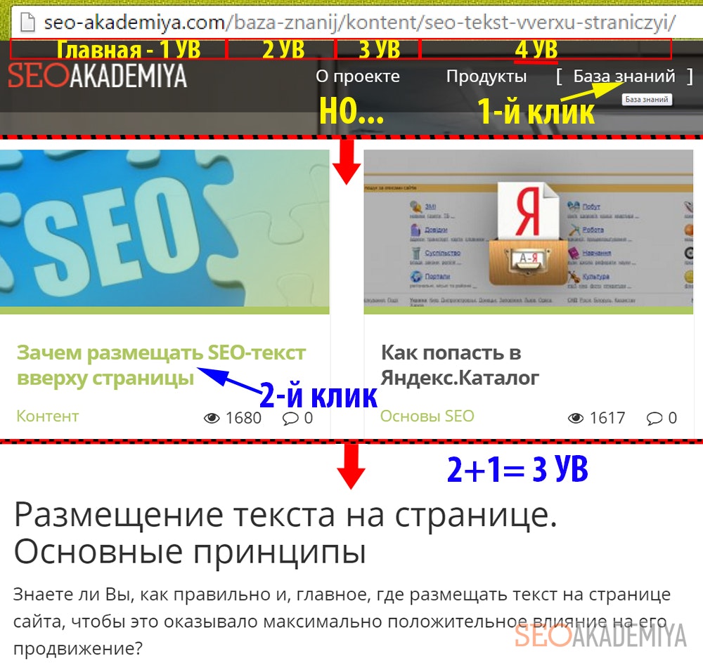 Чим більше етапів переходу, тим більше УВ і тим сильніше буде заплутана структура сайту. Це погано не тільки з точки зору відвідувачів, але і пошукових систем.