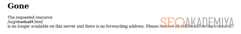 - Видалення дублів сторінок, використовуючи перенаправлення 410. Непоганий варіант замість попередніх двох способів. Повідомляє зайшов в гості робота пошукача про те, що сторінки не існує і відсутні дані про альтернативний документі. Вставляється в файл конфігурації сервера .htaccess у вигляді: