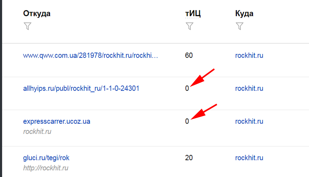 Причому якщо у випадку з гугловской Search Console кожен посилається сайт потрібно перевіряти, наприклад, за допомогою сервісу pr-cy та інших йому подібних, то в Яндекс. Веб-майстер відображається тИЦ кожного донора, що відразу ж дозволяє робити висновки про них.